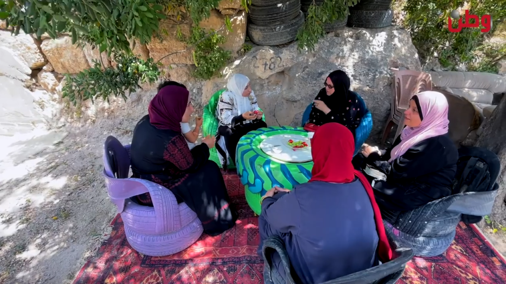 The idea emerged from the reality experienced by inhabitants locally as they suffer from the pollution caused by the burning and dumping of damaged tires. Interested in alternatives and ways to embellish the area, Tatweer wa Nahda attended trainings in Nablus and began producing benches and outdoor seats, decorative planters and swings. Their imagination grew to design a full playground and lounge.