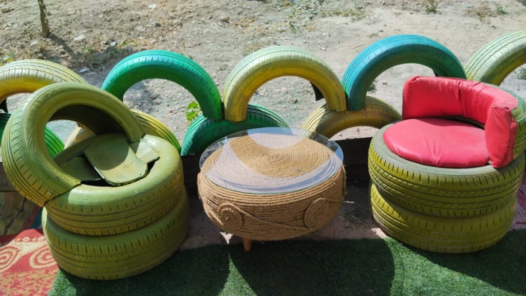 Among these are car tires recycling trainings and the set-up of a tire recycling workshop. These are making our environment more beautiful!